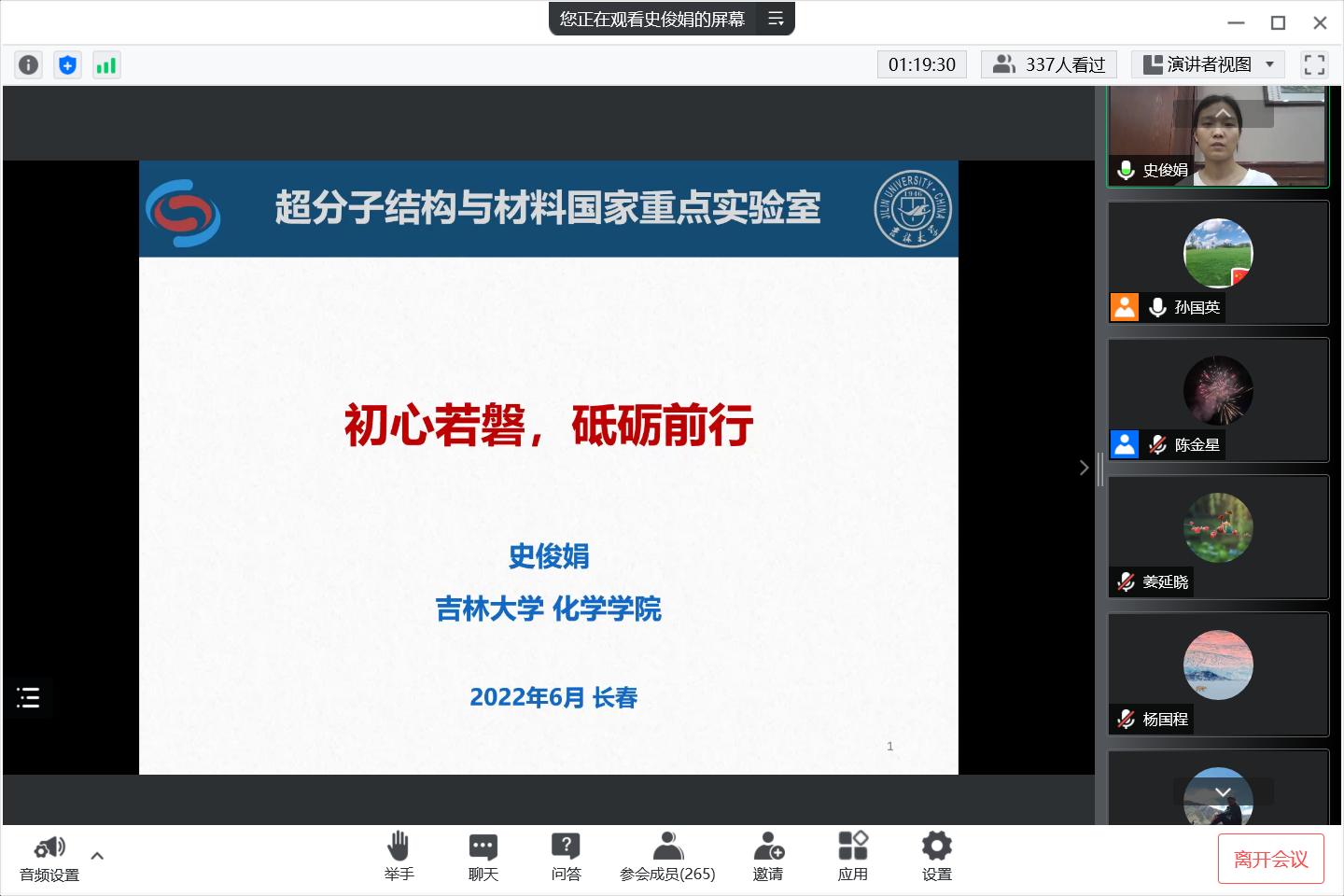 新闻网讯(通讯员 马静为加强选树表彰先进榜样,激发学生学习热情,持续营造优良学风,6月30日,我院召开第三期化生讲堂·“疫”线课堂,会议由副院长孙国英主持,2012级优秀学生姜延晓,王显,史俊娟,陈金星受邀参加会议并做报告,分享十年来的学习工作的宝贵经验,研究生及部分本科生参加了此次会议。