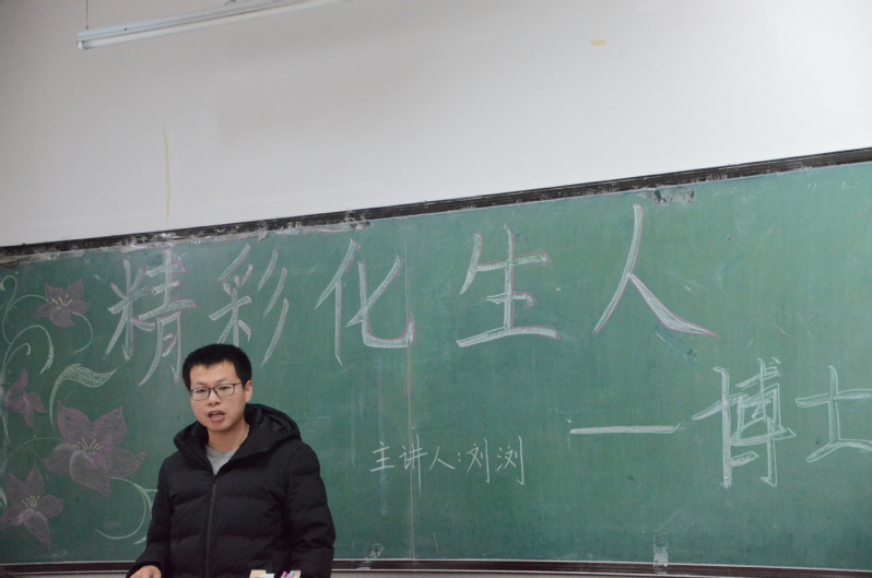 化生团委讯(通讯员 陈鑫 )2018年12月8日,化学与生命科学学院邀请了博士生刘浏在南湖科研楼2604教室开展了“精彩化生人”博士学长谈成长宣讲活动。