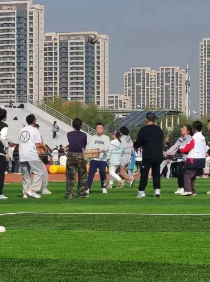 由10名参赛队员牵拉一面四周栓有20根围绳的同心鼓,将排球在两分钟内连续颠起,排球弹起高度不低于20厘米为有效,中断后由专人捡球置于鼓上。