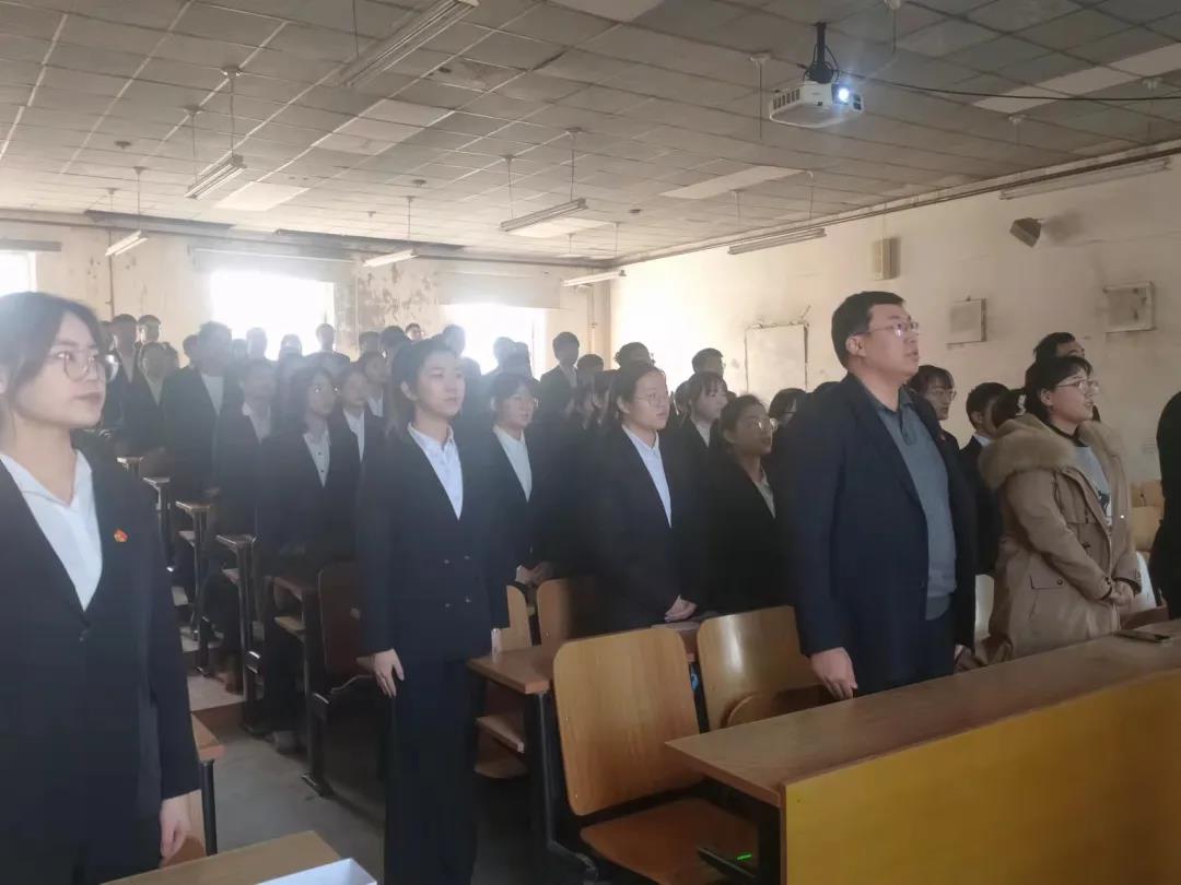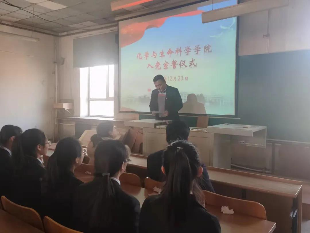 伴随国际歌的奏响宣誓仪式正式开始张鹏老师宣布参加宣誓的预备党员名单为闫思宇等70随后徐秉锋书记为预备党员佩戴党徽并对新一批预备党员表示祝贺。在张春红同志带领下全体新党员进行入党宣誓。面对着党旗,党员们怀着热切而激动的心情,坚定地宣读入党誓词。紧接着,王硕同志代表预备党员发言郑重向党组织表决心感谢党组织的悉心栽培以及每一位党员同志的热切关怀最后徐秉锋书记做总结讲话徐书记首先对新入党的同志表示了祝贺并表示作为一名共产党员一定要做到牢固树立四个意识坚定四个自信做到两个维护不忘初心牢记使命真正做到爱国爱党爱民。