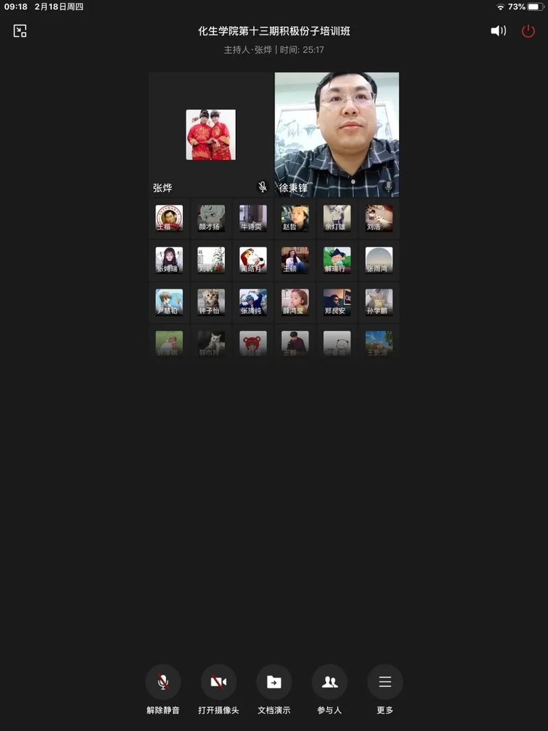 新闻网讯(通讯员:臧颖)为进一步加强入党积极分子的培养、教育和考察,提高入党积极分子的思想政治素质。2月18日,利用网上会议模式,我院第十三期入党积极分子培训班成功举行开班仪式。院党委副书记徐秉锋、团委书记张鹏、研究生党支部书记张烨、学生党支部书记侯天放出席此次会议,我院入党积极分子参与了此次会议。