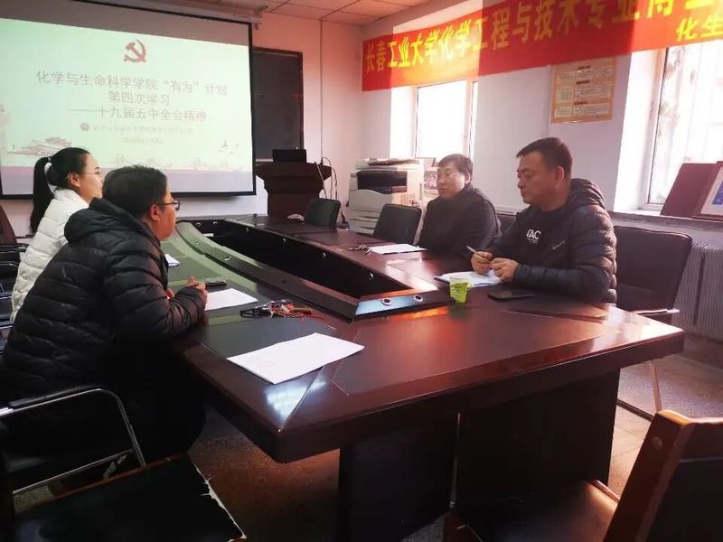 新闻网讯(通讯员:秦美琼)为深入学习贯彻党的十九届五中全会精神,着力推进建设社会主义现代化国家,更加高效切实地进行政工工作落实,11月5日,我院在南湖校区化生楼会议室召开“化学与生命科学学院‘有为’计划第四次学习——十九届五中全会精神”专题学习会,我院党委副书记徐秉锋、团委书记张鹏、辅导员张烨、侯天放出席此次会议。