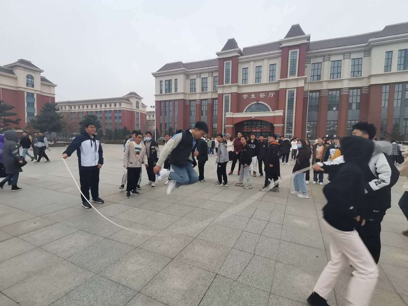 新闻网讯(通讯员 臧颖)为丰富学生课外生活,提高综合体能素质,培养学生团结拼搏的精神。我院于11月6日在西区食堂门口开展了“绳”彩飞扬-跳大绳活动。由20级辅导员张烨组织,2020级全体学生参加了此次活动。