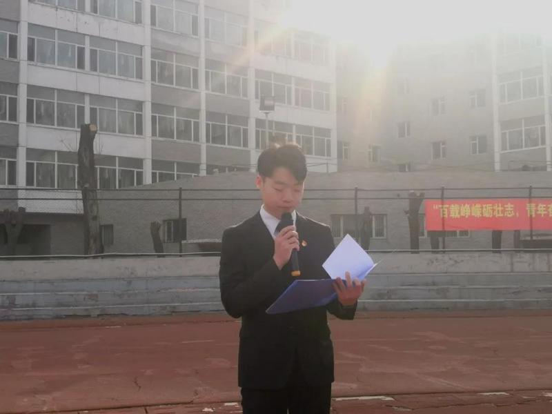 本次升旗仪式的护旗手由崔劲松、孙睿晗、温馨、郭梓腾担任,由梁正基主持此次升旗仪式。伴随全体师生庄严的注目礼,四名护旗手护送国旗前进,《义勇军进行曲》骤然响起,全体师生庄严肃立,向国旗行注目礼。而后韩晶鹏做国旗下演讲,他表示作为新时代青年大学生,我们当学着前辈的样子,勇肩使命,紧接着郭巾玲宣读主题倡议书,倡议同学们学党史感党恩,坚决听党话跟党走,践行初心使命、赓续崭新征程。随后由徐秉锋副书记致辞,他向我们讲述作为大学生我们要走在学党史第一线,增强“四个意识”,坚定“四个自信”,做到“两个维护”,以高度的政治自觉投身到党史学习教育中来。活动最后徐秉锋老师向所有同学送上祝福,希望同学们可以脚踏实地,认真学习,为实现自己的人生价值而不懈奋斗。