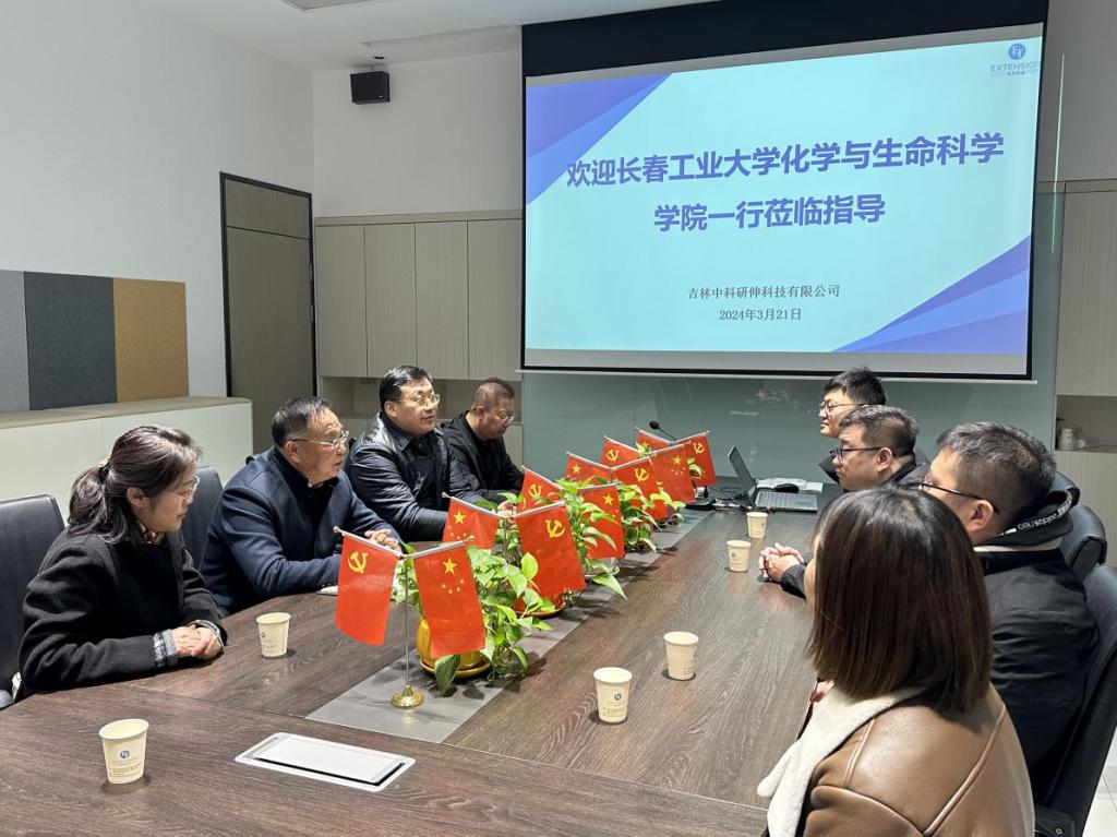 本网讯(通讯员: 孙铭)为深入贯彻落实党中央、国务院关于促进高校毕业生“稳就业”“保就业”的决策部署,贯彻落实省委省政府、省就业工作领导小组关于做好2024届全省高校毕业生就业创业工作部署要求以及全省2024年高校毕业生留吉就业创业工作推进会会议精神,3月21日化学与生命科学学院党委书记朱兴国、党委副书记徐秉锋、学院副院长孙国英、毕业班辅导员张烨,到吉林中科研伸科技有限公司、长春赛诺迈德医学技术有限责任公司开展访企拓岗促就业专项活动。吉林中科研伸科技有限公司赵礼义董事长、长春赛诺迈德医学技术有限责任公司孙成信董事长以及企业相关部门负责人进行了接待并参加座谈交流。