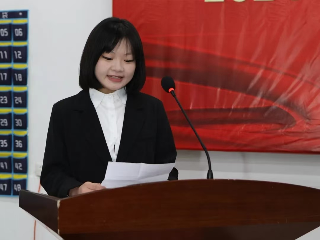 获奖学生代表韩旭荣同学发言,分享了自己在学习过程中的经验与感悟,鼓励同学们树立明确目标,坚持不懈地追求知识与进步。