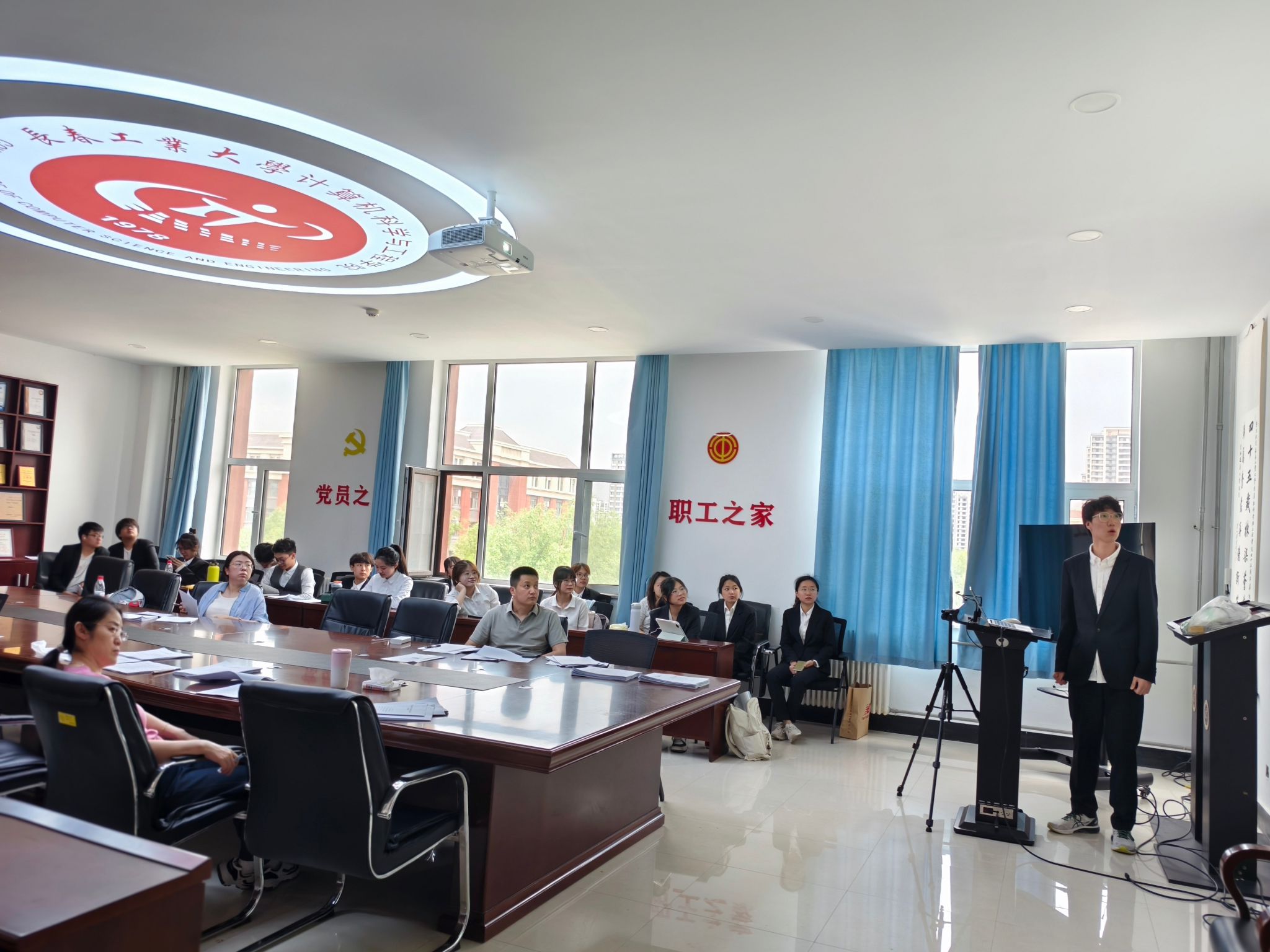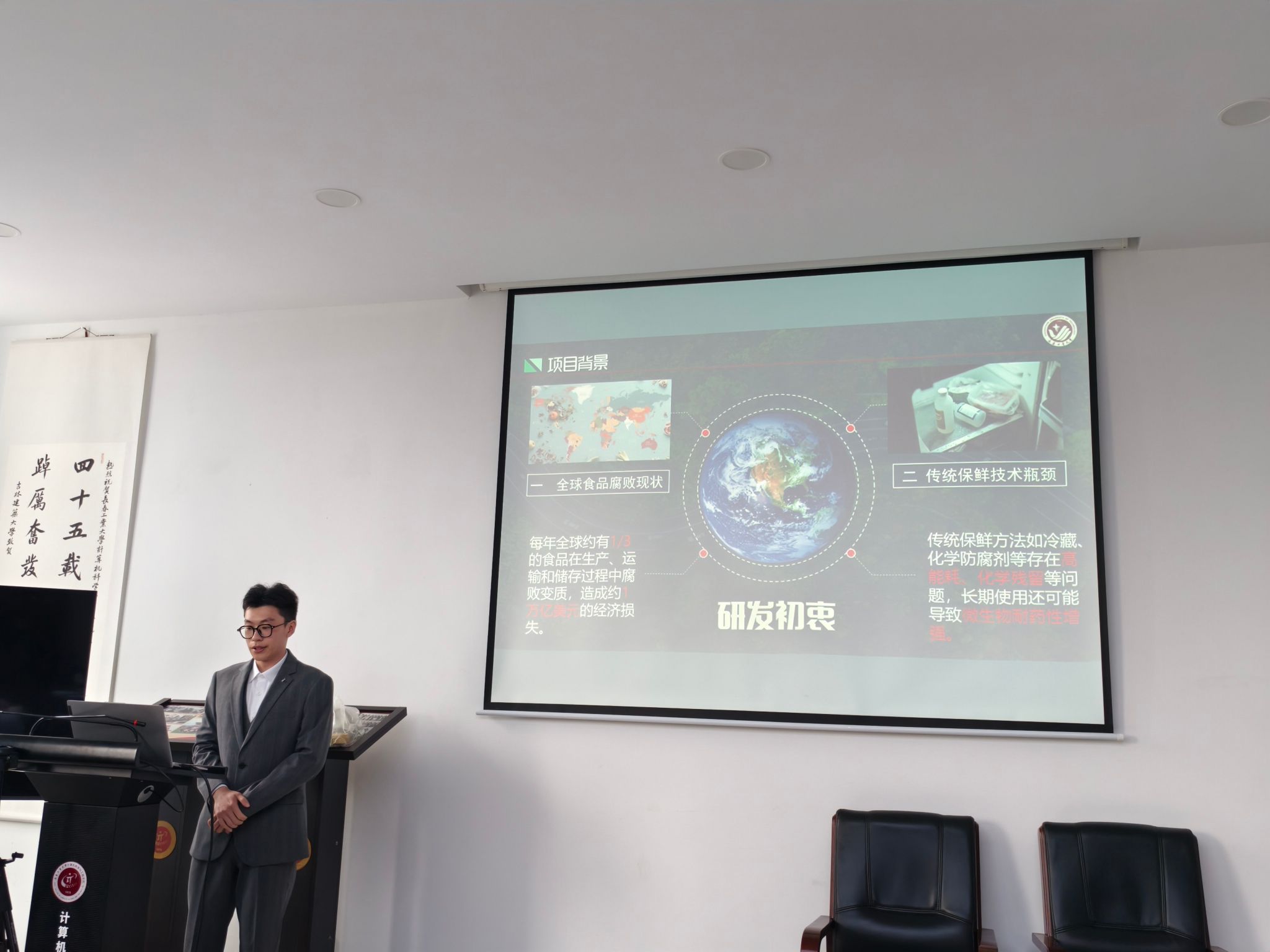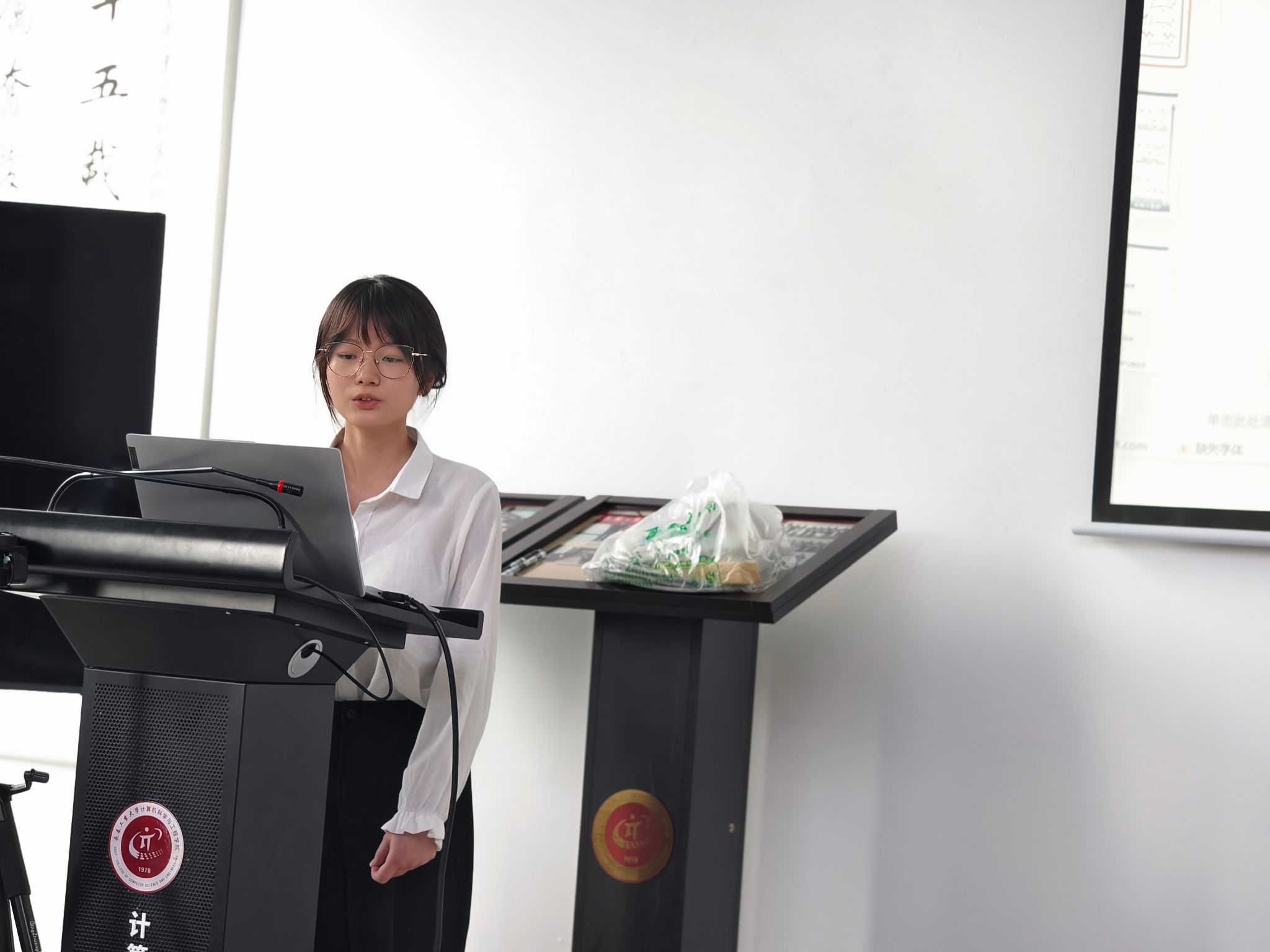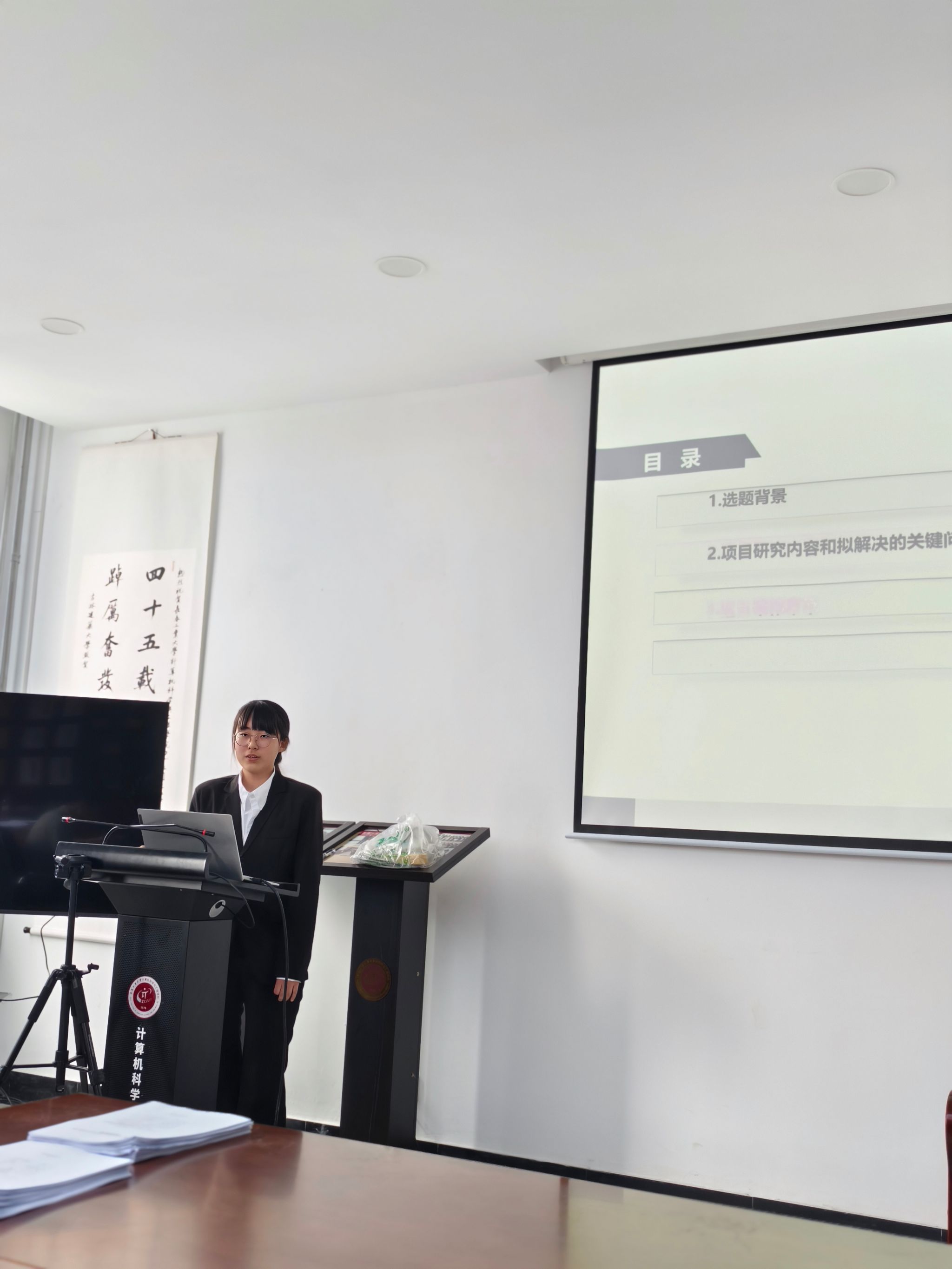 答辩当天,参与项目的同学们早早来到现场进行准备。本次答辩流程安排紧凑合理,各项目团队按照顺序依次上台进行展示。每个团队有5分钟的时间进行项目汇报,其中包括项目的研究背景、创新点、研究方法、实施过程以及预期成果等内容的阐述 ,随后进入10分钟的评委提问答辩环节。在汇报过程中,同学们借助精心制作的PPT,以清晰的逻辑、流畅的表达,充分展示了各自项目的特色与亮点。