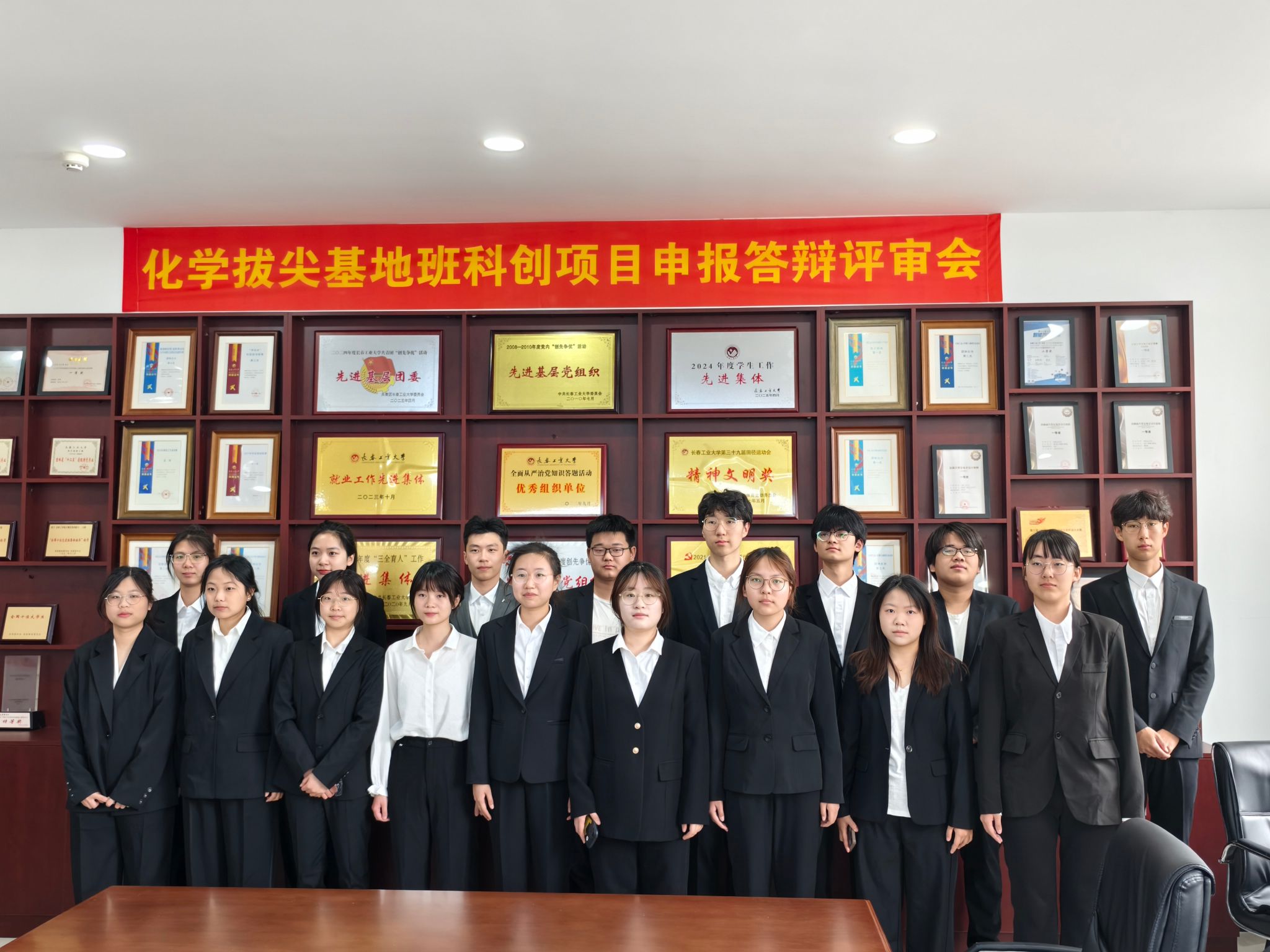 20256月5日化学拔尖基地班科创项目申报答辩在北湖西区计算机楼 315会议室举行学院院长王哲教授担任组长,副院长王志兵教授担任副组长,孙国英教授、李明教授、王宇超副教授、关爽副教授和刘奕冰博士担任评审委员经过激烈的角逐和评委们认真严谨的评审,最终评选出国家项目6项,省级项目4项,校级项目7项。