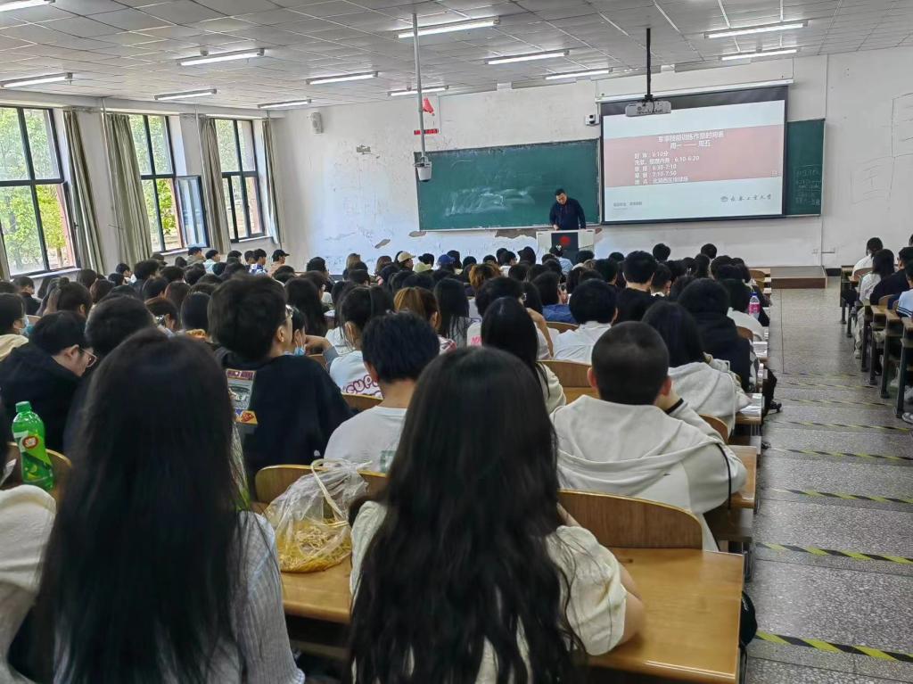 此次会议包括以下两方面内容。一是张鹏老师为2022级学生介绍了承训教官,对为期14天的军事技能训练进行了明确的期望和要求,并对接下来的军事训练进行了布置,并且鼓励同学们通过军训锻炼团队协作能力、执行能力、整理内务能力。二是军训动员会后,张鹏老师首先着重强调学风、考风考纪,要求同学们要养成良好的考试习惯,诚信考试并督促同学们努力学习,希望大家在期末考试中取得优良成绩,无考试违纪情况发生。其次对近期网络舆情做出解答,提示大家在网络上切勿断章取义、虚假宣传、散布谣言,要为维护学校荣誉做出自己的一份贡献。最后介绍了我院2019级考研情况,并希望全体2022级新生明确自己的人生目标。