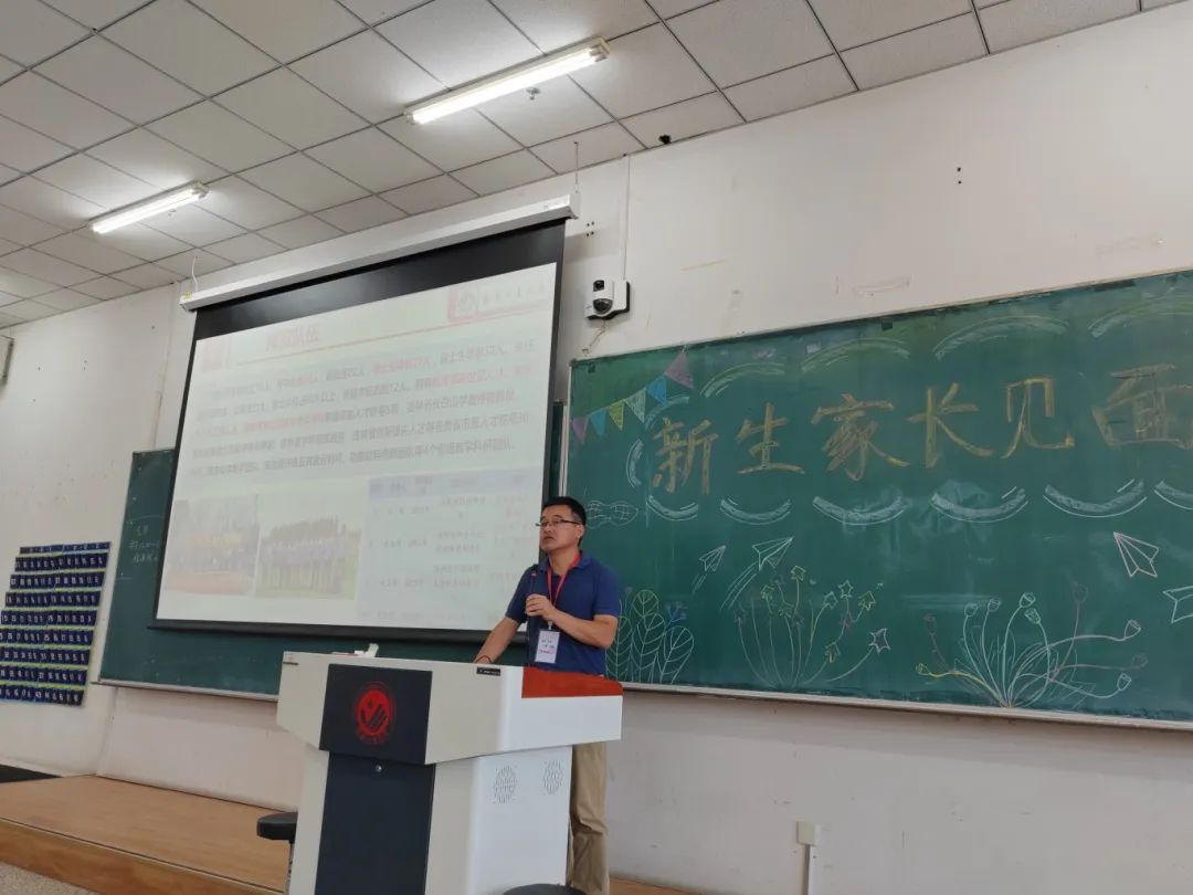 随后王哲院长详细的介绍学院的具体情况,他首先恭喜各位同学加入到化生学院开始大学生涯学习,指出我校化学学科已进入ESI全球排名前1%,同时详细介绍了包括师资队伍教学成果、科学研究、学生培养、优秀校友等方面情况。他表示我院近年来发展迅速,主持国家自然科学基金项目23项、省级以上项目30余项,随着教育教学资源逐步完善,极大满足了学生实习和实践的需要。他指出,我院非常重视本科生教学与科研训练,近五年,以本科生为项目负责人完成大学生创新创业训练计划项目438项,共发表文章118篇,学生参与度达95.4%。对于家长最关心的就业情况,他表示近三年来,我院毕业生就业率均在90%以上。王哲院长也希望同学们“志存高远,脚踏实地;扬帆起航,不负韶华”。