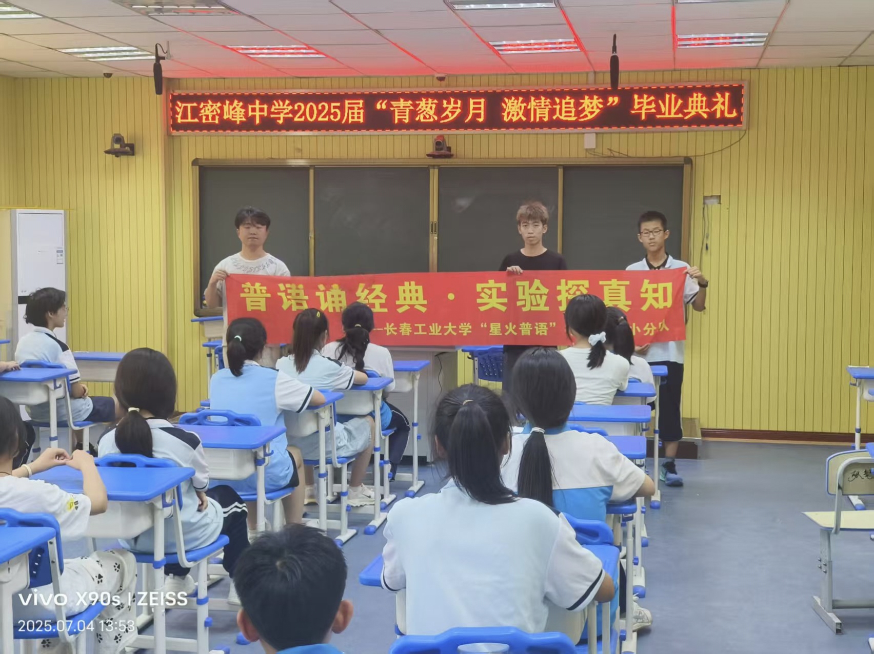 本网讯通讯员:滕昊燃为深入贯彻落实国家语言文字方针政策,助力提升乡村学校学生的普通话水平,传承和弘扬中华优秀语言文化,近日,bw必威西汉姆联官方网站化学与生命科学学院“星火普语”小队走进吉林省吉林市江密峰中学,开展了以“普语诵经典·实验探真知”为主题的推普实践活动。