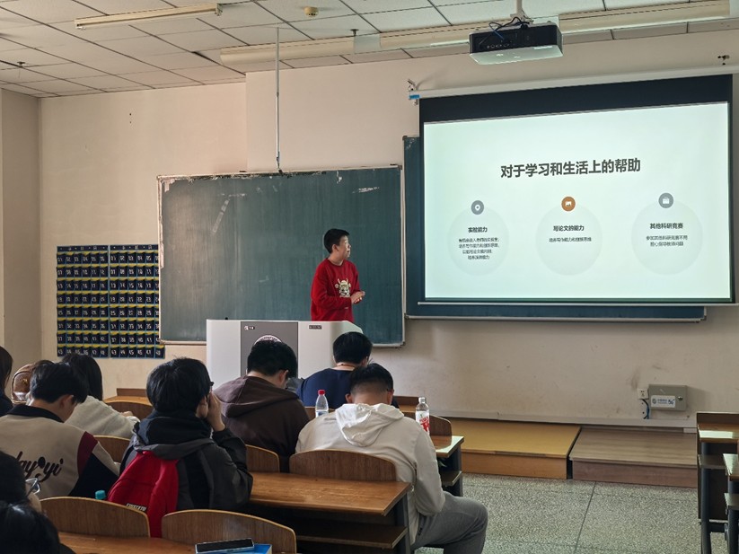 会上,23070302班班长姜宽福分享了大创项目在化学人才培养中的核心作用。大创项目是锻炼学术与实践技能、培养未来化学领军人才的关键平台。参与项目能深入化学领域,强化实验设计与数据分析能力,培养团队合作与项目管理技巧。同时,大创项目也是激发创新创业能力的独特机会,考验专业知识、创新思维与问题解决能力。通过产教融合,同学们能将所学转化为解决问题的能力,创新理念转化为产品或服务,为创新创业之路奠定坚实基础。