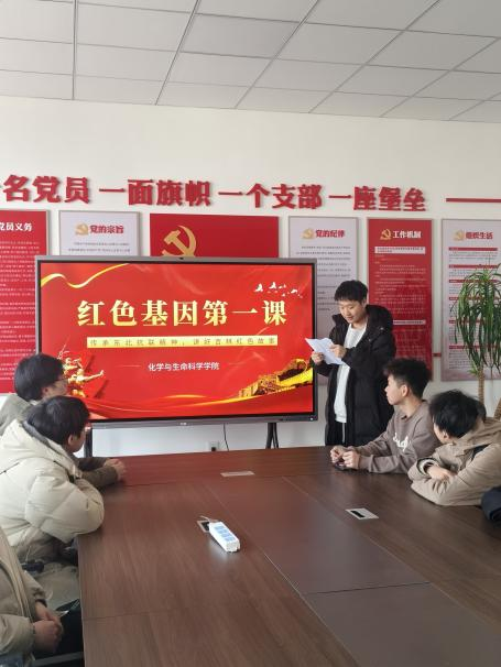 本网讯通讯员李柔为深入学习东北抗联精神,传承红色基因、赓续红色血脉,引导青年大学生厚植家国情怀、汲取奋进力量,2026年3月18日下午,化学与生命科学学院在化生楼A306会议室成功举办"红色基因第一课"之革命故事分享会。本次活动以"传承东北抗联精神,讲好吉林红色故事"为主题,学院8名学生代表深情讲述革命故事,分享寻访感悟,在青年学子中引发强烈共鸣。