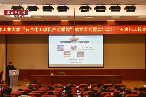 新闻网讯(通讯员 孙树林1218日学校“石油化工现代产业学院”成立大会暨二零二零“石油化工校企论坛”在南湖校区学术报告厅举行。吉林省教育厅高教处处长宋辉,校长张会轩,副校长李占国出席会议,成立大会由副校长张明耀主持。吉林大学、中科院长春应用化学研究所、中国石油吉林石化公司研究院、吉林石化公司合成树脂厂、辽阳石化公司、大庆石化公司、中国中车长春轨道客车股份有限公司、吉林碳谷碳纤维股份有限公司、吉林精功碳纤维有限公司、吉林国兴复合材料有限公司、中国兵器北方华锦集团有限公司、天津利安隆新材料股份有限公司、双辽昊华化工有限公司、吉林省开顺新材料有限公司、长春吉原生物科技有限公司、吉林华邦新材料科技有限公司、吉林省龙展新材料科技有限公司、吉林中科金盛科技有限公司、吉林伊特胶管有限公司等二十二位专家学者代表出席本次会议。