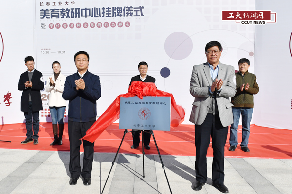 副校长李占国和党委副书记李新为美育教研中心揭牌